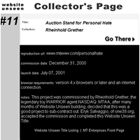 Box Reuse Julia Christensen (2006) | getawayexperiment.net Marcus Neustetter and Nathaniel Stern (2005) | Imprimatur Andy Deck (2005) | knitPro microRevolt (2005) | OilStandard Michael Mandiberg (2006) | Website Unseen MTAA (1999) | ||