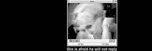 ¿Es esta obra una mera reflexión acerca de CUseeme, es decir, es básicamente formal? Yo diría que no. Ésta es una obra de arte creada para un entorno específico en el que reflexionar y hacer comentarios acerca de preguntas universales sobre la existencia humana. Es una pieza conmovedora y triste, que tiene más que ver con las emociones que con la tecnología. Como en una película en blanco y negro de los años veinte, seguirá resultando impactante, incluso si se queda anticuada, durante mucho tiempo. Las obras de arte siempre pueden retrotraerse a su época. No hay nada de malo en ello. Distance es un trabajo duro, doloroso de ver. Lo es por su combinación de gestos tecnológicos sencillos, casi predecibles, y al mismo tiempo de elecciones artísticas esenciales, y porque muestra el fracaso humano y el deseo evidente de establecer contactos sólidos con otros. Es una reflexión sencilla acerca de la soledad mediatizada, y como tal recuerda, como por ejemplo, a la obra del director canadiense Atom Egoyan (10), para quien la interacción social vía el lente de una cámara y la soledad intermediática son temas recurrentes. La secuencia de imágenes en Distance forma una película lenta, en donde llenamos automáticamente los vacíos entre las imágenes con nuestra imaginación. El dolor que sentimos es la vergüenza de tener que enfrentarnos al dolor de otra persona, pero también experimentamos compasión melancólica y reconocemos el sentimiento. Me recuerda mucho a cómo me hacen sentir algunas performances físicas “tradicionales”: quieres irte y seguir mirando al mismo tiempo. Aunque las personas en las imágenes no estén desnudas, es casi como si lo estuvieran.